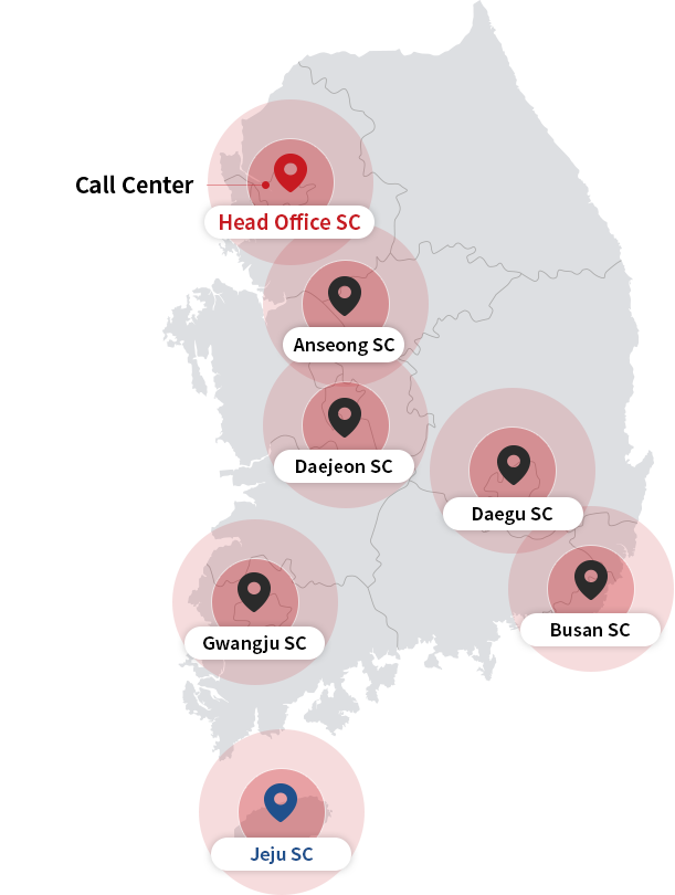 We currently operate service center in 5 regions nationwide for on-site maintenance services, and also support non-stop maintenance services 365 days a year based on quick communication of central control center.
